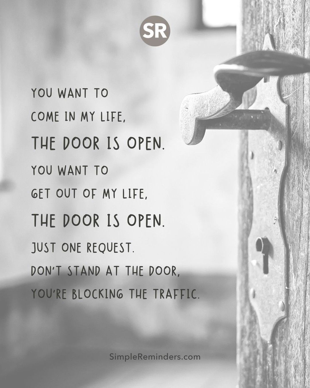 Simple Reminders on X: “You want to come in my life, the door is