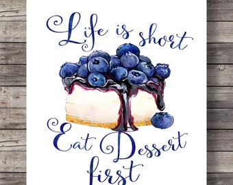 Life is Short Eat Dessert First Watercolor Dessert Lettering