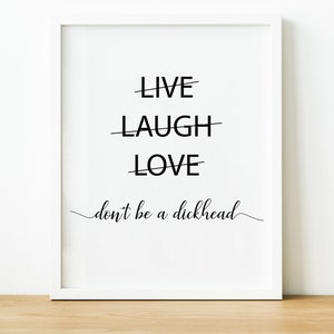 Funny Live Laugh Love Quote Prints, Minimalistic Above Bed Art