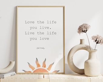 Bob Marley Print / Bob Marley Quote / Love the Life You Live Live