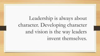Quotes About Leadership And Character – “This life is yours. Take the power to choose what you want to do and do it well. Take the power to love what you want in life and love it honestly. Take the power to walk in the forest and be a part . commitment to the leadership role and character. Character is the least-researched and least-represented element in leadership development programs, which is unfortunate because character is .